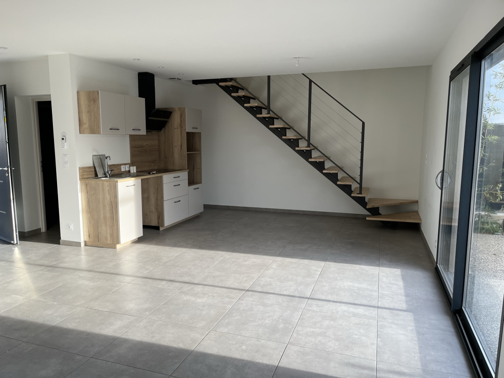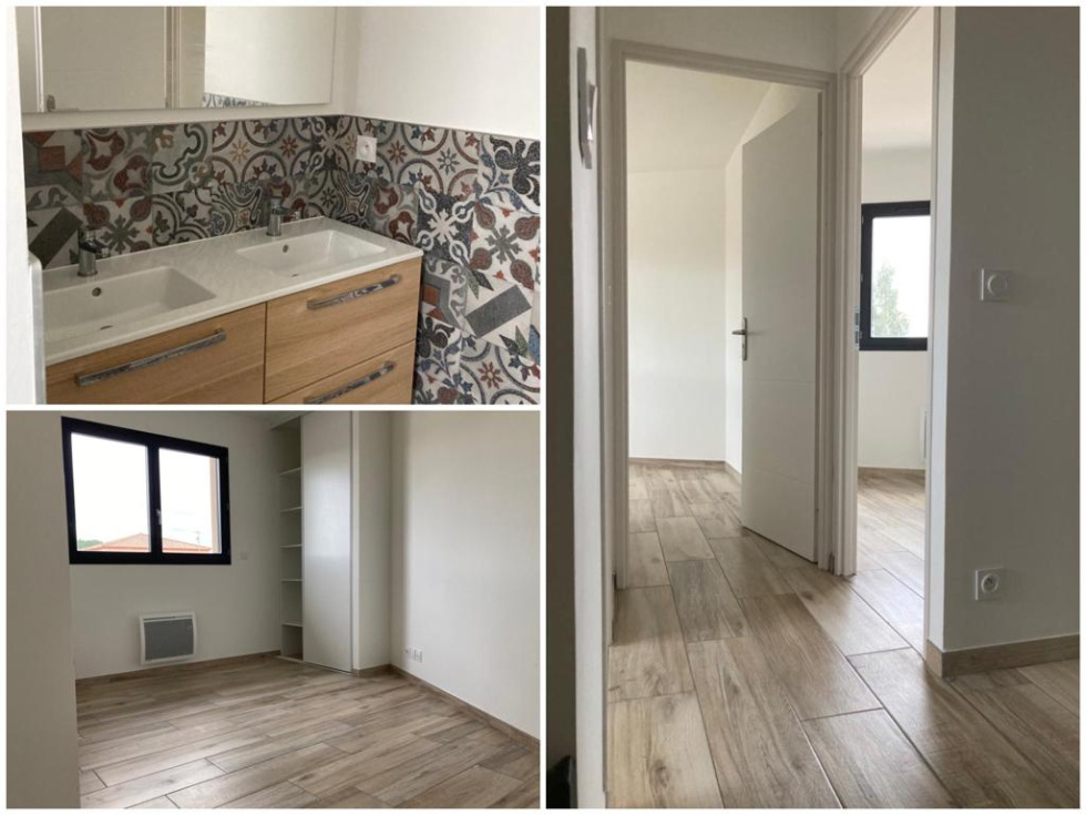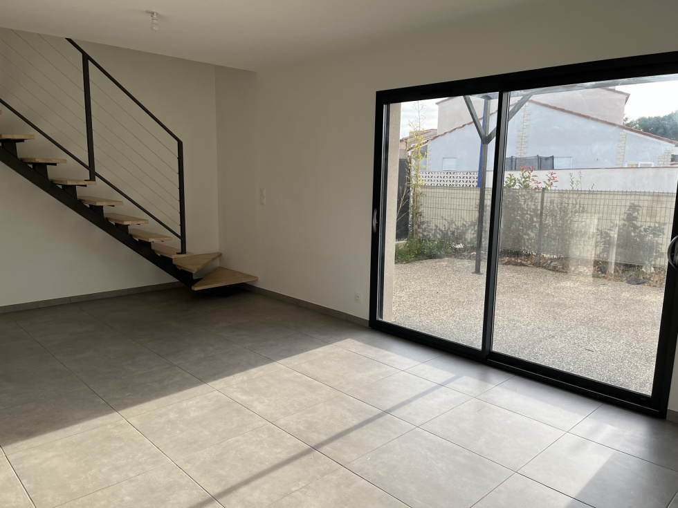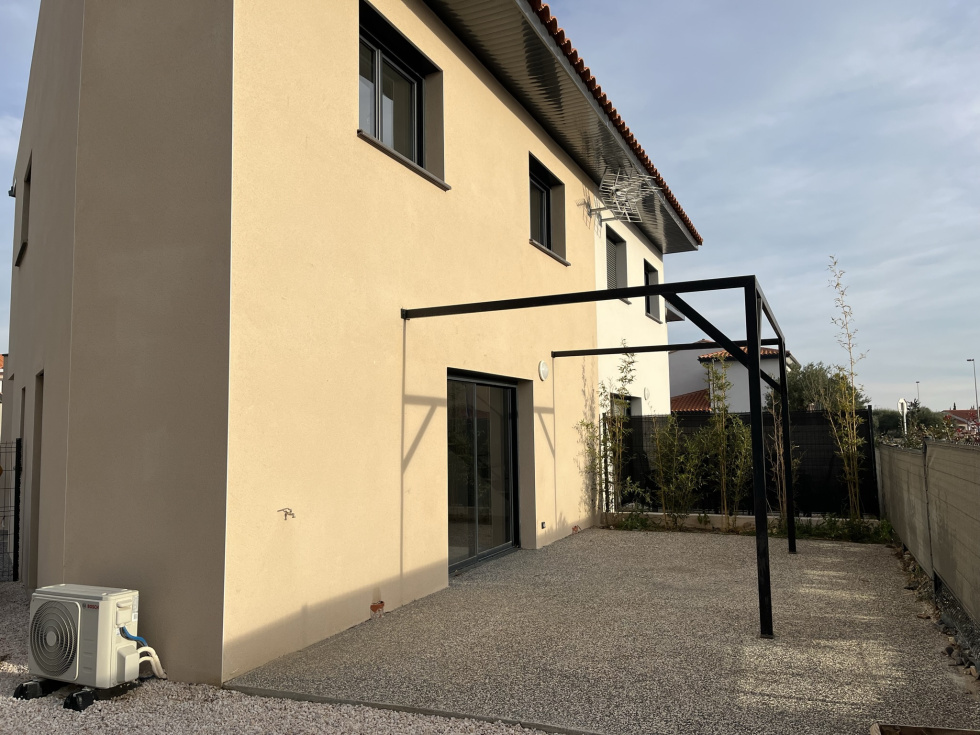 Nouveau à CABESTANY a louer VILLA 3 Faces NEUVE de Type F4 comprenant une entrée, salon/séjour/cuisine donnant sur Terrasse, wc indépendant et garage en rez-de-chaussée et 3 chambres, salle d'eau et wc indépendant à l'étage Clim réversible, menuiserie Alu double vitrage et volets roulants motorisés, 2 emplacement de parking devant la Villa, jardin orienté Sud-Ouest Libre à partir du 19 Décembre Loyer 1180 euros HC FA 555 euros