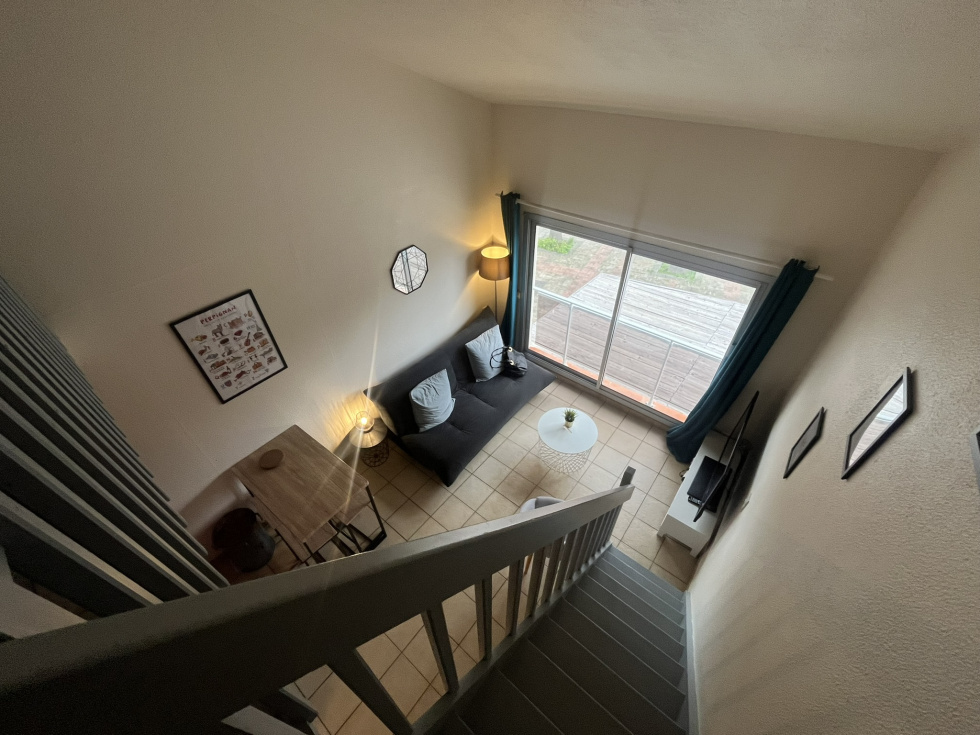 Idéalement situé à 100mde la plage et dans petite résidence avec faibles charges de copropriété, Bel Appartement en duplex composé d'une entrée avec placard, salle d'eau avec wc et fenêtre, séjour/cuisine équipée et en mezzanine une chambre avec climatisation .Possibilité de revenurs locatifs saisonniers interressants Charge de copropriété 150 euros / an Taxe foncière 470 euros Cumulus neuf